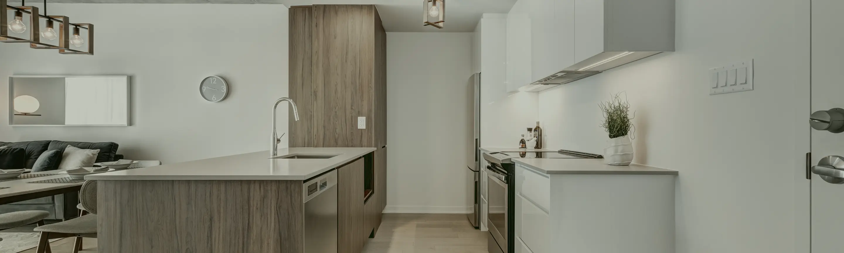 最新キッチンで空間全体を