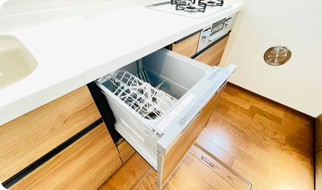 汚れにくく、お手入れがしやすい最新のレンジフードやガラストップコンロを採用。毎日のお手入れが簡単になり、清潔さを保ちやすくなります。