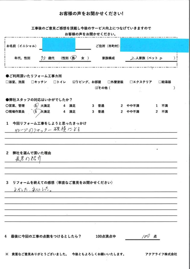 3 リフォームを終えての感想(率直なご意見をお聞かせください)