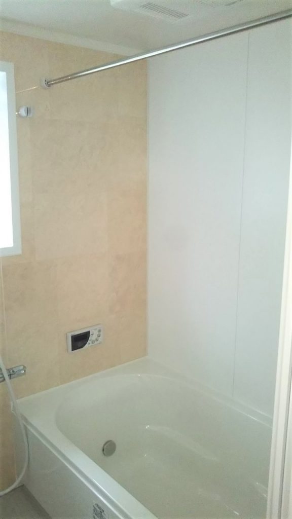 浴室はタイル貼りからユニットバスへ。毎日使う場所なのでリフォームすると快適さが違います。