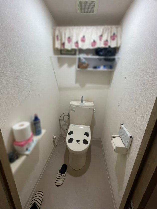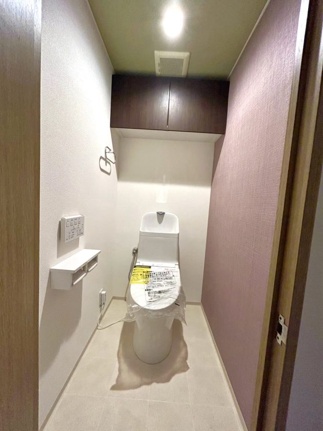 工事後4 トイレ 節水型の最新トイレ。掃除しにくかったすき間の少ない設計で助かります。収納棚も新設し、内装も一新して気持ちよくお使い頂けそうです。