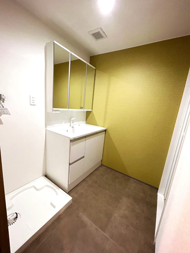 工事後5 洗面室 三面鏡ですっきりし収納力の高い洗面化粧台。内装も一新して気持ちよくお使い頂けますね☆