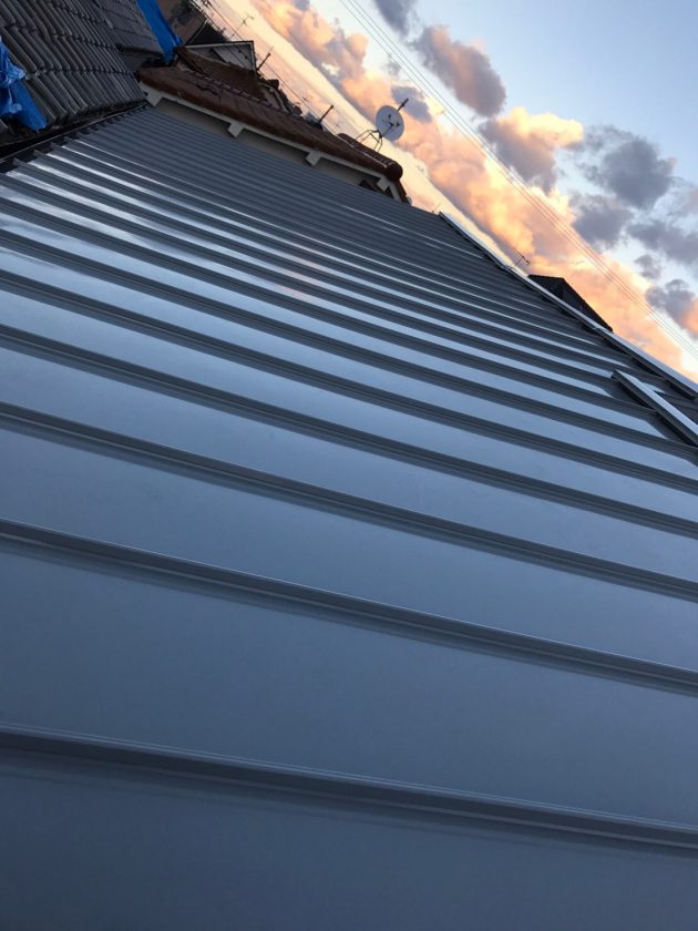 が必要で緊急対応をさせて頂きました。以前は瓦屋根でしたが、工事後は金属を使った屋根材へとやり替え