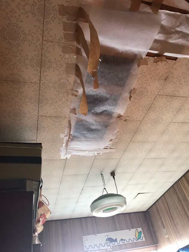 屋根の工事は当時大変混み合っている工事のひとつでしたが、天井部分の雨漏りも大変ひどく一刻も早く復旧