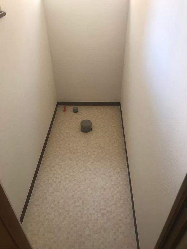 小便器と和式トイレがあったタイル貼りのお手洗いを、洋式トイレに取替し、クロスとCF貼りのお手洗いにリフォーム。